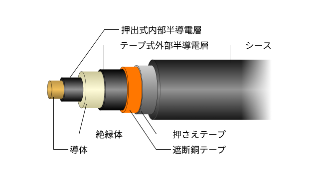 | 外部半導電層 | 押出成形 | テープ巻き |