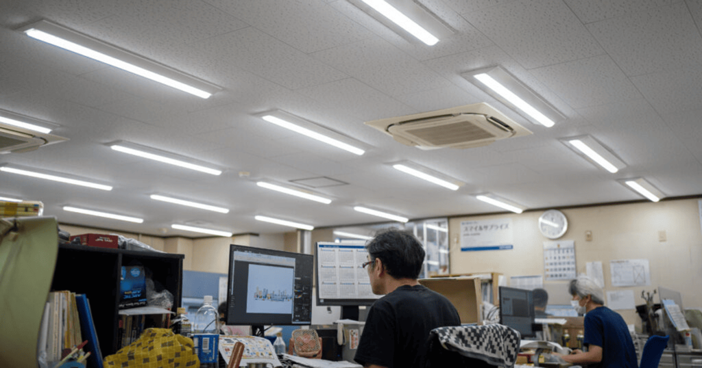本記事は、企業におけるLED照明導入を体系的に整理する連載シリーズ「法人向け|LED照明」の第2回です。前回の基礎内容を踏まえ、オフィスの蛍光灯をLEDに更新する際の工事の流れや注意点を分かりやすく解説します。工事を検討している企業の総務担当者や施設管理者の方は、ぜひ参考にしていただけますと幸いです。