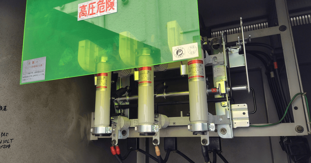 高圧受電設備に設置されるPASやUASは、建物と電力会社の配電網をつなぐ重要な開閉器です。