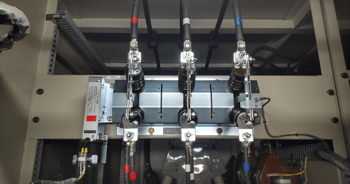 新しいVCBを搬入し、盤内へ据付します。レールタイプの場合はスムーズにスライドできるか、固定式の場合は盤の寸法に対する位置を微調整しながら確実に固定します。一次端子の接続(高圧ケーブル端末)、二次制御回路の接続を行い、誤結線がないよう図面と照合しながら丁寧に結線します。