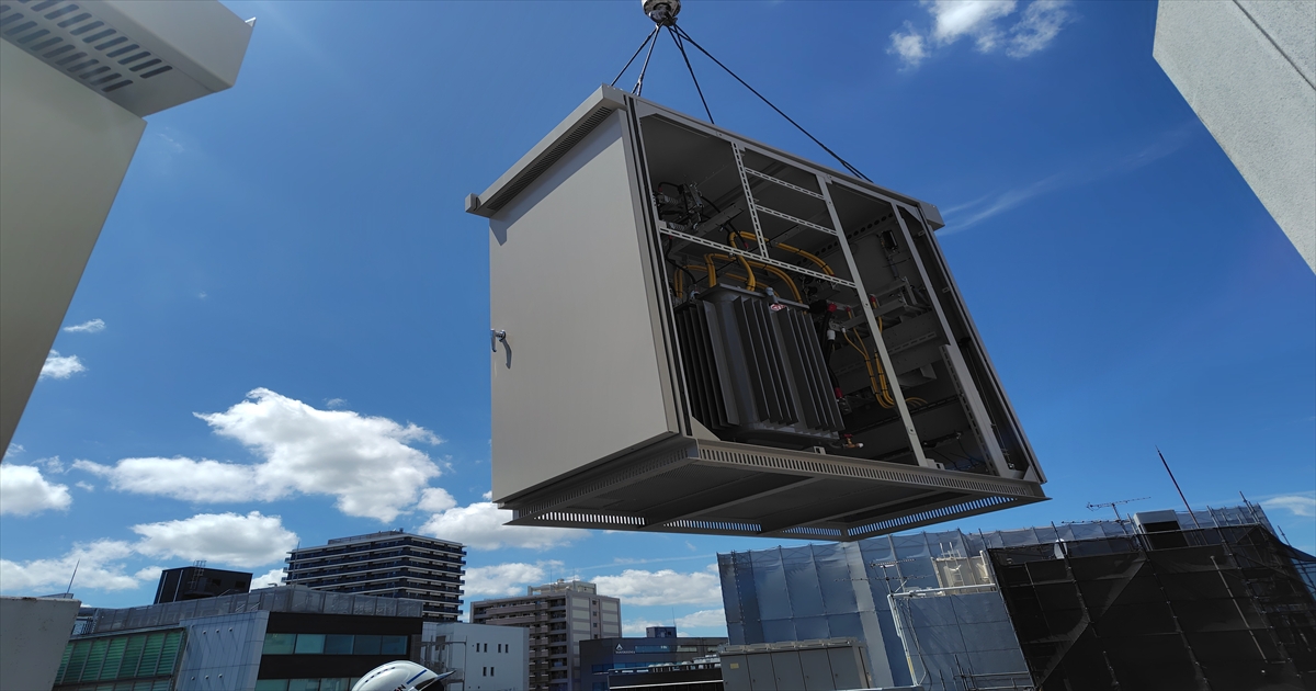 新しい高圧コンデンサを現場に搬入し、指定位置に据付します。