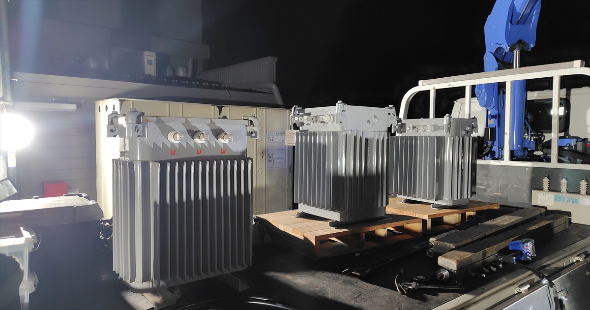- トランス本体の吊り上げ・搬出(重量に応じてレッカーまたは台車を使用)