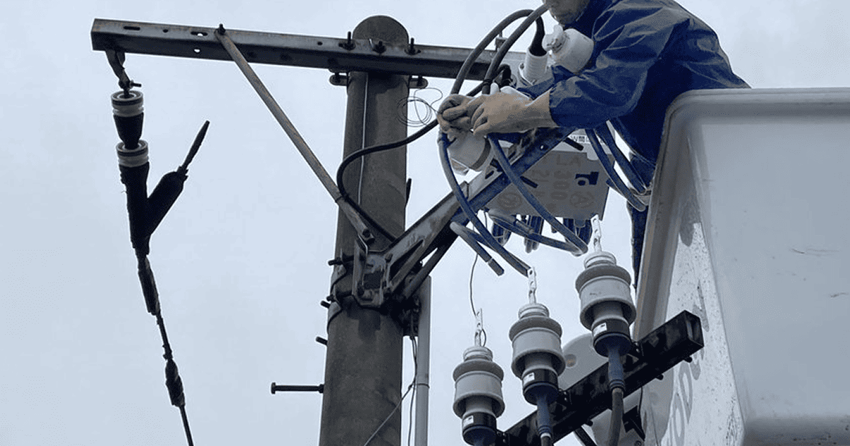 撤去時とは逆の手順で新しいPASを架柱上へ搬入・据付します。機器の水平・位置を調整し、しっかり固定した後、高圧引込線の結線を行います。必要に応じて、ヒューズリンクや支持金具の交換も同時に実施します。