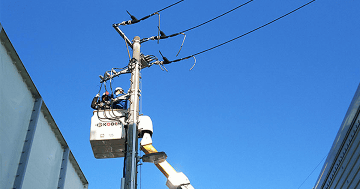 工事の安全確保のため、電力会社の送電線にアース線を取り付けます。 - 連携・協議
