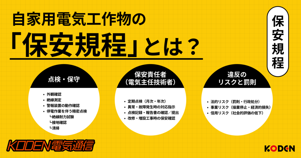 今回公開した記事では、キュービクル設置時に求められる保安規程の内容や届出のタイミング、電気主任技術者の役割、さらに違反時のリスクまで、実務目線で分かりやすく整理します。